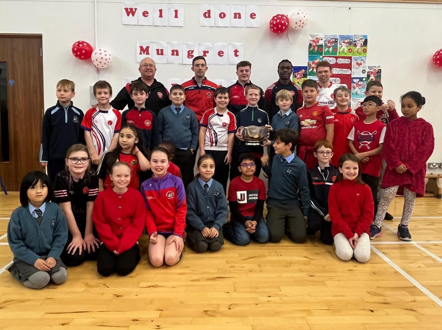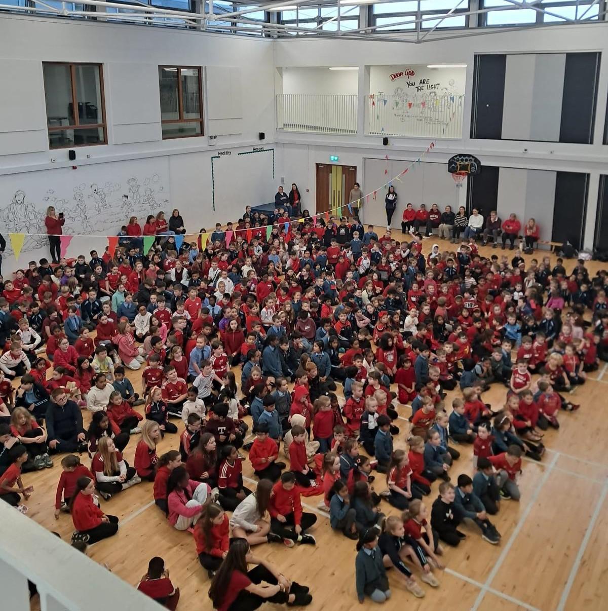 All Pupils from Junior Infants to 6th class in our Halla to greet the players.