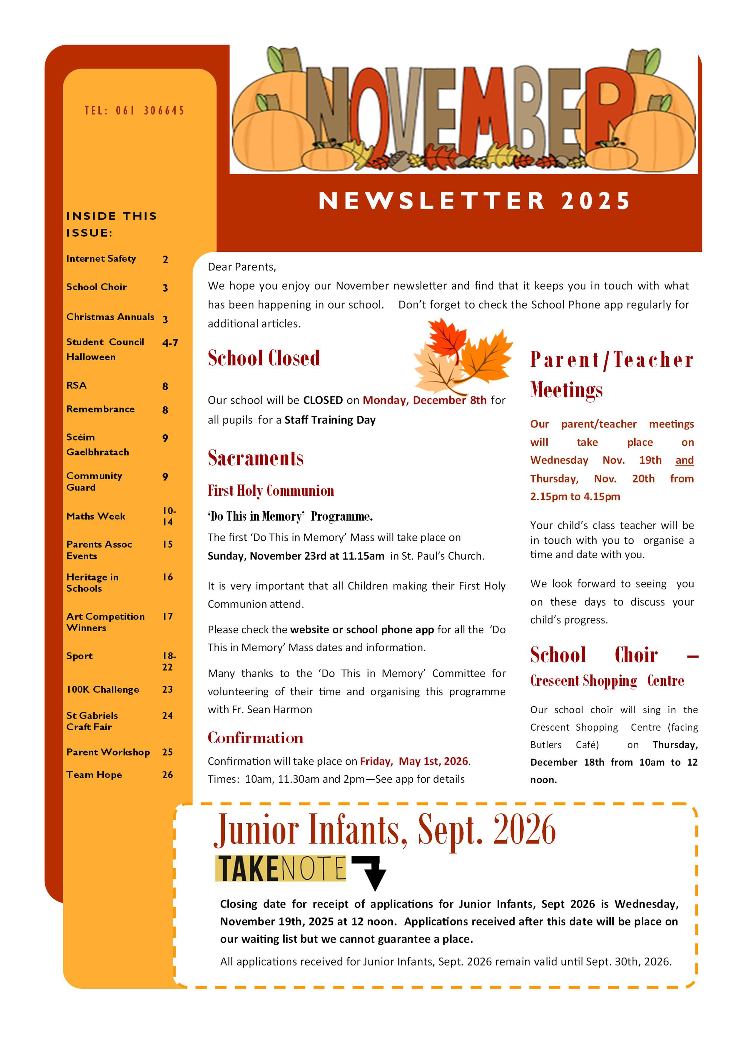 It also contains some information on events which our Parent's Association will be holding in December.....