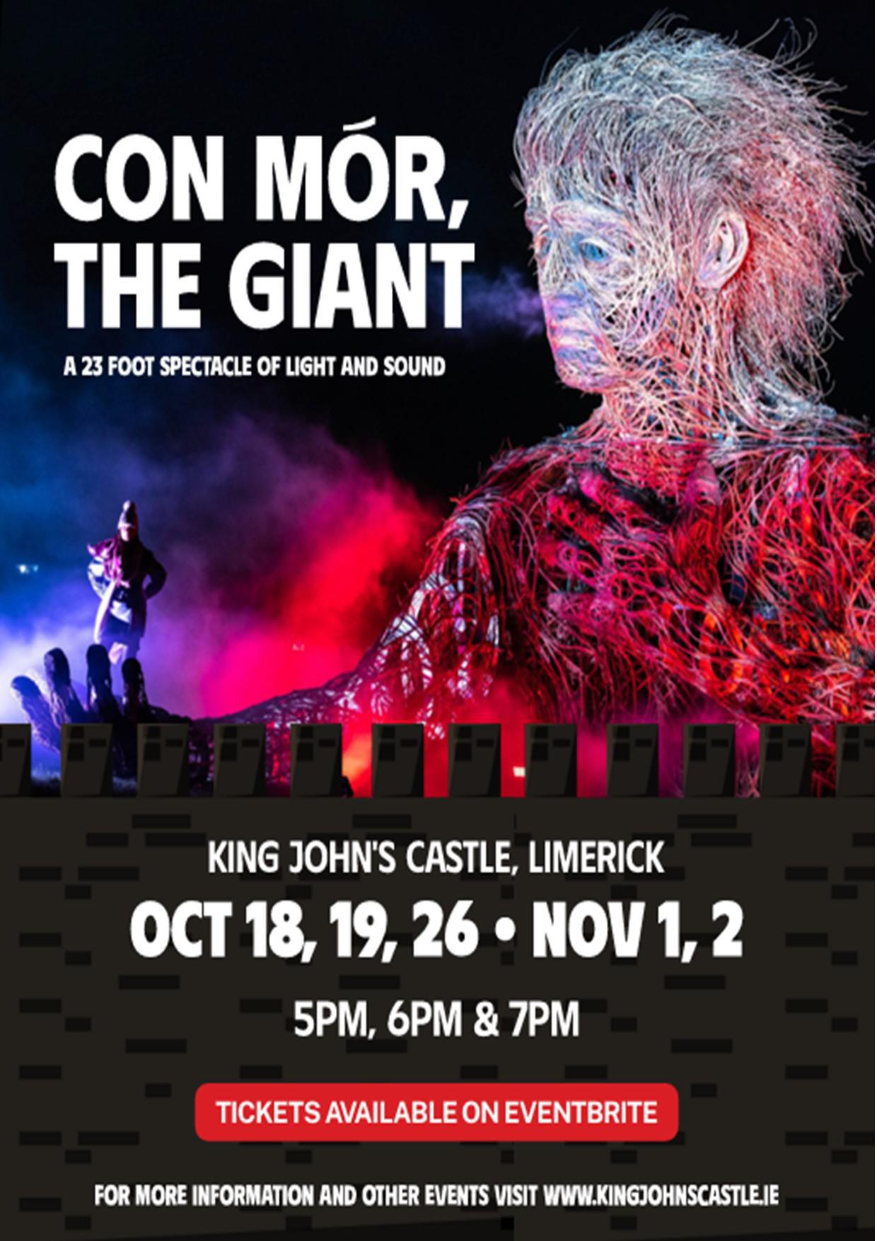 Tickets are available from Eventbrite Con Mór, The Giant, at King John's Castle Tickets, Multiple Dates | Eventbrite
