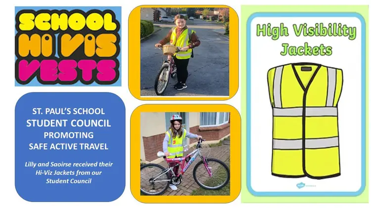 The Student Council have been distributing Hi Vis jackets to the children in the school who cycle to school every day. They are moving towards also giving them to those who walk to school and will be going around to the classes in the next couple of weeks. They are on a campaign to help promote children travelling to school in as active a way as possible.