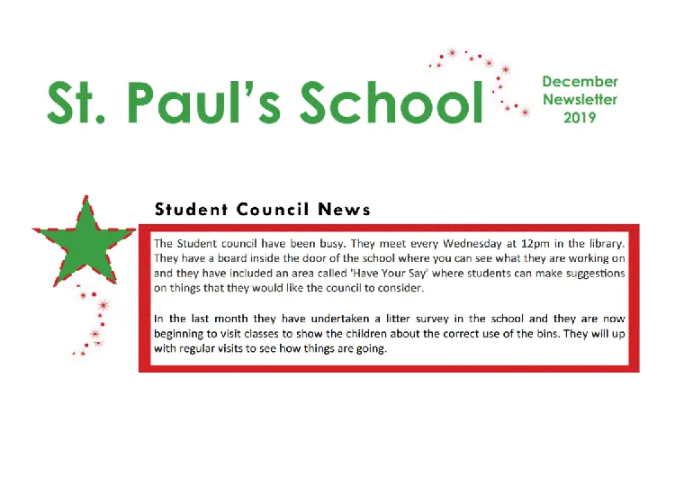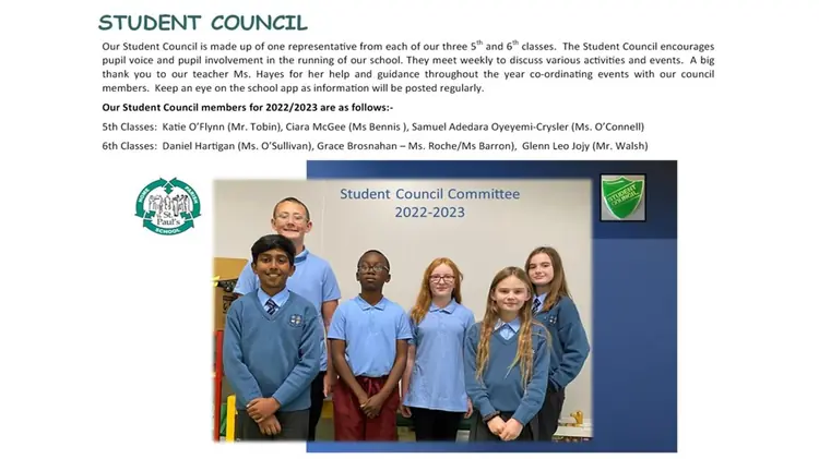 The role of St. Paul's Student Council is to provide opportunities for students to voice their opinions and offer suggestions in relation to many aspects of school life.